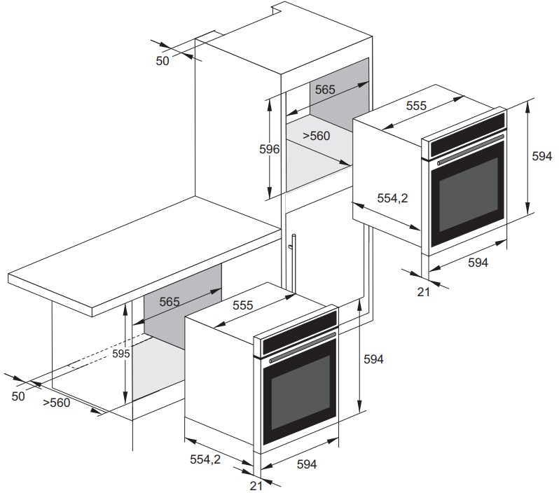Ко всем моделям прилагаются подробные инструкции по установке, где указаны точные размеры ниши для каждой конкретной духовки.