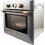 Духовой шкаф выполнен в ретро-стиле и покрыт серой эмалью, которая подчеркивает фактуру фронтальной панели. Такая модель идеально впишется в аутентичный интерьер или будет работать как контрастный элемент в стандартном современном гарнитуре.