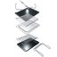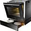 Фронтальная сторона духовки выполнена из черного высокопрочного стекла, которое придает роскоши и благородства дизайну. Холодный фронт духовки обеспечивает трехслойное ударопрочное стекло, а для удобства использования применена система выдвижных противней. На внутреннем панорамном стекле размещена таблица рецептов.