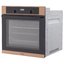 Korting OKB 691 CSC — независимый встраиваемый электрический духовой шкаф в современном стиле из коллекции Spectrum. Фасад цвета меди изготовлен из стекла и металла, дверца имеет двойное остекление. Для ухода за камерой объемом 64 литра предусмотрена паровая и каталитическая очистка. Девять режимов нагрева включают конвекцию, турбогриль, размораживание продуктов, горячий воздух. Регулировка параметров работы производится при помощи утапливаемых поворотных переключателей, сенсорных кнопок TouchControl, LED-дисплея белого цвета. Имеется таймер с возможностью отсрочки старта духовки Кортинг OKB 691 CSC.