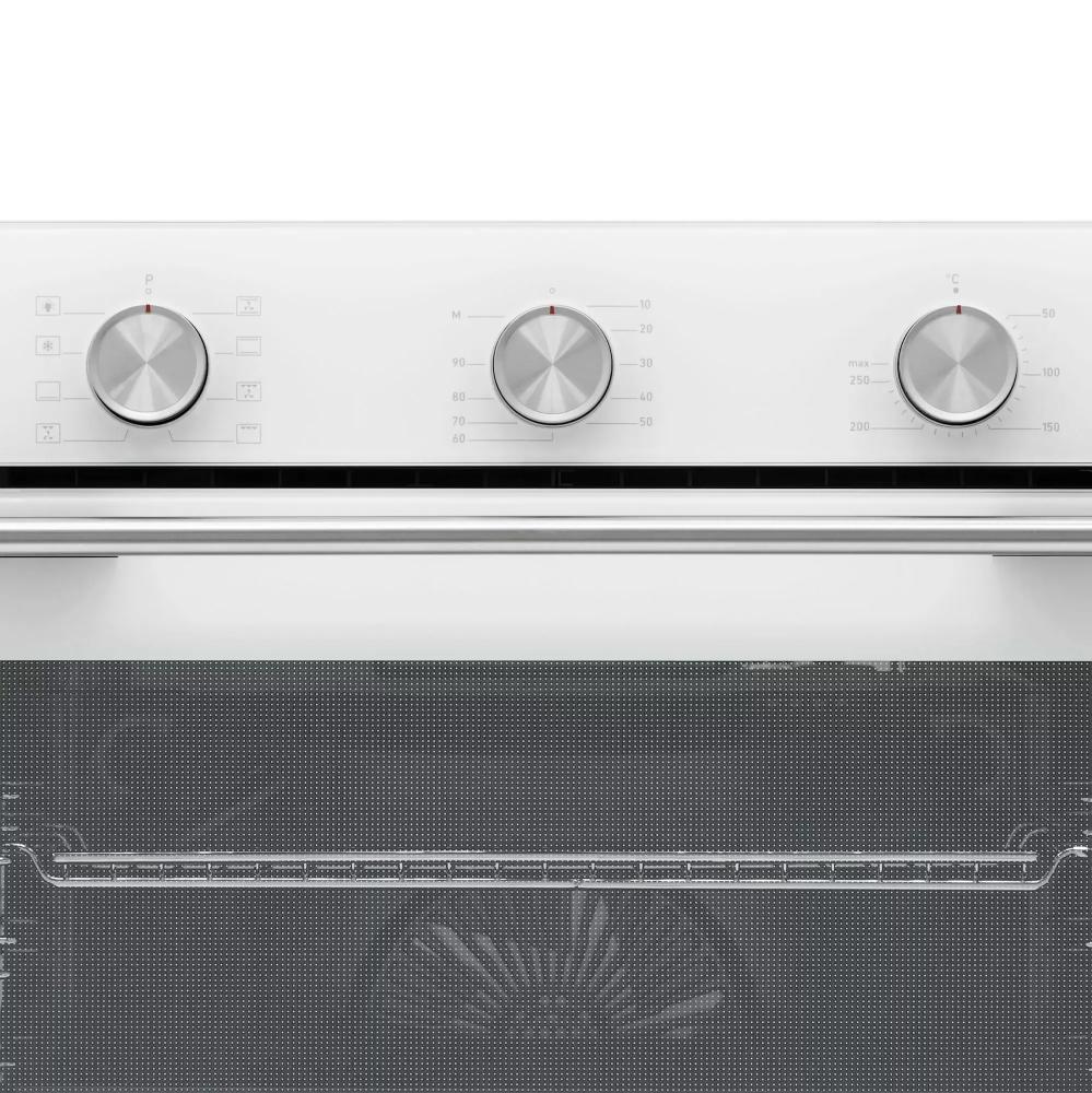 Управление механическое, с утапливаемыми поворотными регуляторами, удобными в обращении и лёгкими в уходе. Таймер помогает не следить постоянно за процессом, а диапазон температуры от 50 до 260 °C даёт свободу для выпечки, запекания и быстрых размораживающих циклов. Электроподжиг упрощает розжиг гриля, а автоматическое отключение по окончании программы повышает безопасность.