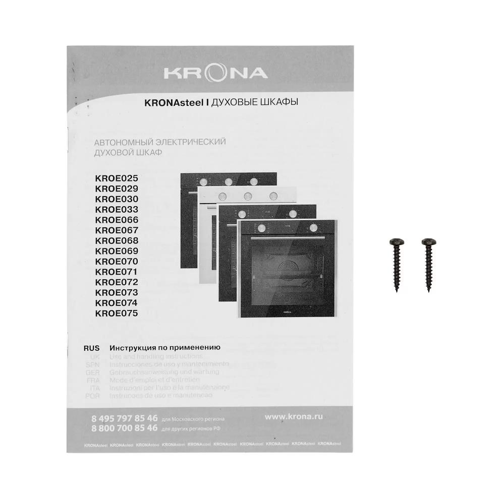 Количество режимов работы в духовом шкафу Крона: 6. В число доступных программ входят: конвекция, гриль для создания хрустящей корочки, и другие. Тип гриля в этой модели — электрический.