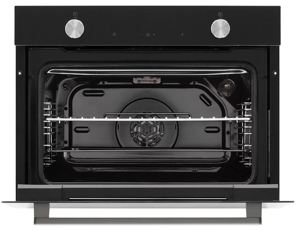 Компактные духовки — оптимальный выбор для тех, кто хочет питаться вкусно и разнообразно, но не располагает кухней большой площади. Подобные модели подойдут также для небольших семей или для тех, кто привык готовить достаточно редко. Объем рабочей камеры у компактных моделей не превышает 55 литров. Ширина их остается стандартной — около 60 см, высота составляет обычно 45 см, а энергопотребление и мощность несколько меньше, чем у полноразмерных моделей. Компактные духовки имеют до трех уровней приготовления.
