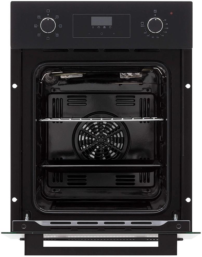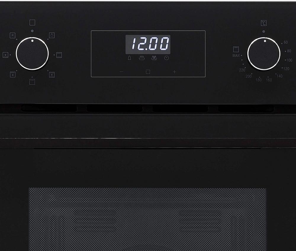 Особенности дизайна и внешней панели управления — также важный пункт при выборе духовки на кухню. В данной модели нужно обратить внимание на цвет — черный, охлаждение двери, чтобы поверхность и мебель вокруг не нагревались.