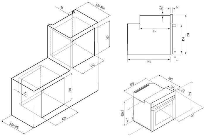 Ко всем моделям прилагаются подробные инструкции по установке, где указаны точные размеры ниши для каждой конкретной духовки.