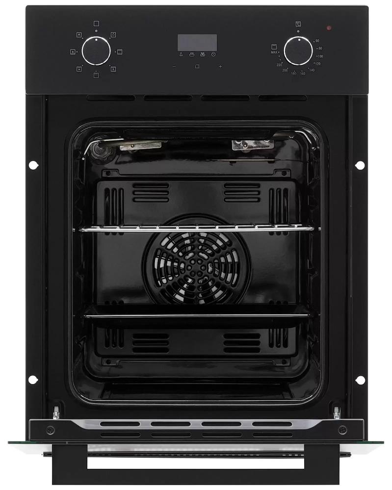 Особенности дизайна и внешней панели управления — также важный пункт при выборе духовки на кухню. В данной модели нужно обратить внимание на цвет — черный,