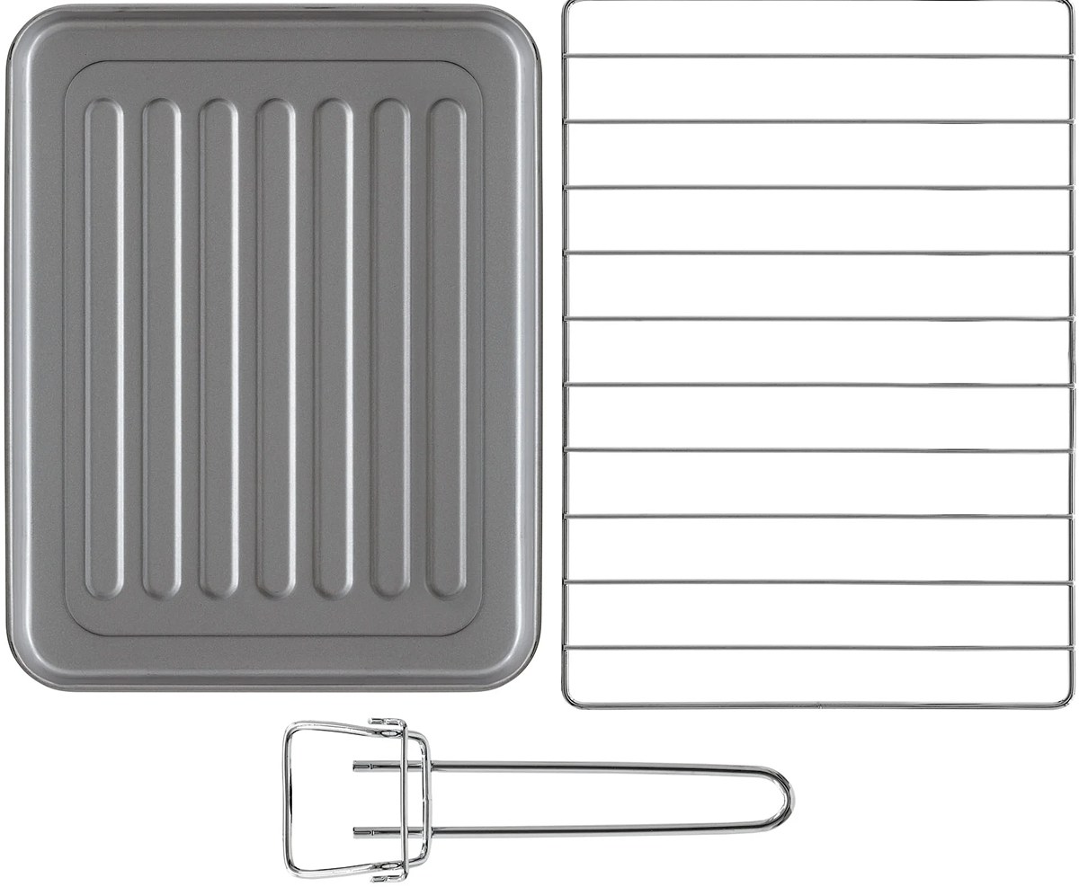 В стандартную комплектацию любого духового шкафа входят один или два противня — эмалированных или с антипригарным покрытием — и решетка. Единственный противень, как правило, имеет низкие бортики и предназначается для приготовления выпечки. Если духовка комплектуется двумя противнями, то второй отличается более высокими бортиками — его можно использовать для запекания мяса, птицы, овощных блюд. На решетке в духовке, не оснащенной грилем, обычно устанавливаются формы для запекания — стальные, керамические или стеклянные. В духовках премиум-класса количество противней может быть увеличено: к стандартному комплекту добавляются противни с перфорацией для мяса, специальные поддоны для сбора выделившегося сока.