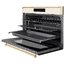 Духовой шкаф выполнен в классическом стиле, имеет эмалированный фасад бежевого цвета и бронзовую фурнитуру, а также сенсорную панель управления с дисплеем. Режимы нагрева включают как традиционные верхний и нижний, так и турбо, конвекцию, несколько типов гриля. Для вашего удобства и безопасности камера оснащена лампочками и телескопическими одноуровневыми направляющими. Вы можете заблокировать панель управления от детей, чтобы они не изменили настройки.