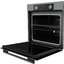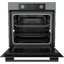 Независимый электрический духовой шкаф графитового цвета под стандартный проем 60×56×55 см. Полноразмерный корпус выглядит сдержанно; серая фурнитура поддерживает общий тон. Независимая установка означает, что прибор не привязан к варочной панели и легко вписывается в любую кухонную композицию.