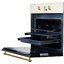 Способ открытия дверцы духовки — немаловажный фактор, который нередко влияет на выбор модели. В современных духовых шкафах используется несколько способов открывания дверцы и, соответственно, их крепления. Самый распространенный и привычный — откидной: петли дверцы располагаются в нижней части духовки, а открытие производится при помощи ручки, закрепленной в верхней части дверцы. Такой вариант используется как в электрических, так и в газовых духовках, встраиваемых и настольных. В ряде моделей ручка отсутствует, а для открывания дверцы достаточно нажать на ее верхнюю часть. Устройства высокой ценовой категории оснащаются также механизмом плавного открывания дверцы: в этом случае за ручку не нужно тянуть, а дверца распахивается самостоятельно. Откидные дверцы часто делают съемными, благодаря этому очистка их значительно упрощается.