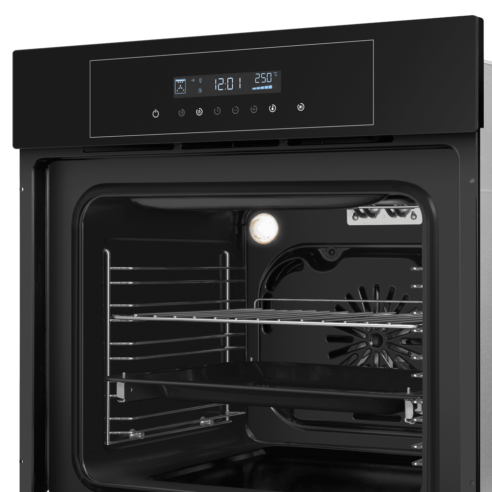 Особенности дизайна и внешней панели управления — также важный пункт при выборе духовки на кухню. В данной модели нужно обратить внимание на цвет — черный,