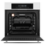 Этот независимый духовой шкаф подключается к электросети и рассчитан на напряжение 220-240 В при частоте 50/60 Гц. Корпус белого цвета дополнен современными деталями: нержавеющей стальной фурнитурой, стеклянной многослойной откидной дверцей, черной сенсорной панелью управления. Объемная камера на 60 л может освещаться изнутри, что делает прибор удачным решением для ежедневного применения или кулинарных экспериментов. Внутренняя поверхность покрыта эмалью легкой очистки, в комплекте поставляются решетка и противень, а очищение реализовано традиционным способом.