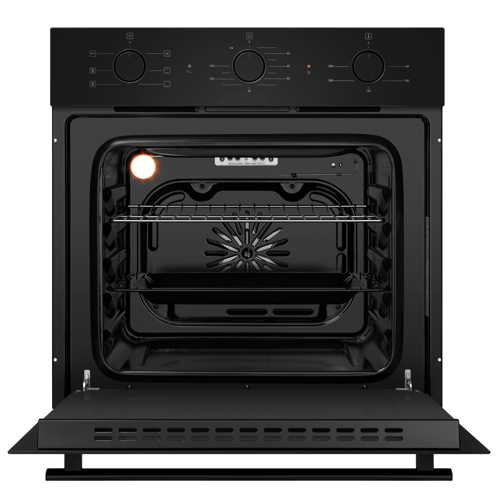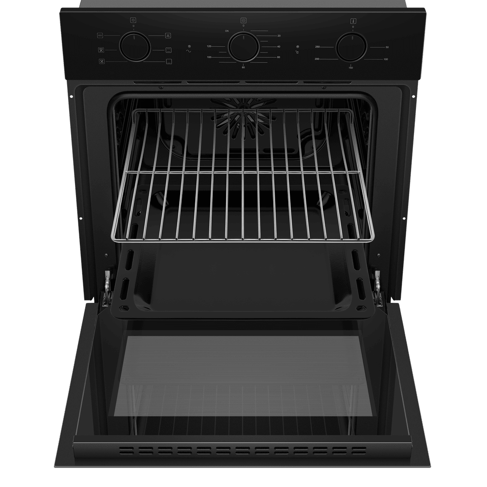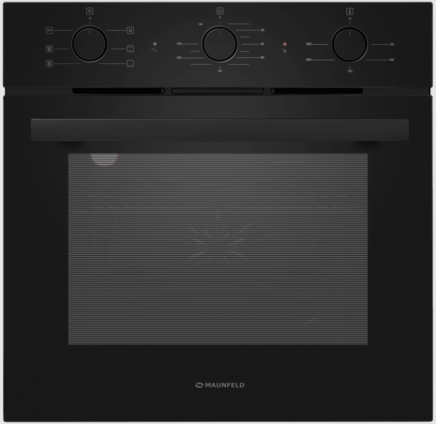 Maunfeld AEOF6060B2 — встраиваемая электрическая печь с набором всех необходимых функций, созданная для тех, кто ценит в технике практичность и не желает переплачивать. Лицевая часть выполнена в глубоком черном цвете с матовой фурнитурой того же оттенка, что создает ощущение основательности и безопасности. Откидывающаяся дверца с двумя слоями стекла гарантирует удобный доступ к внутренней части и отличный обзор.