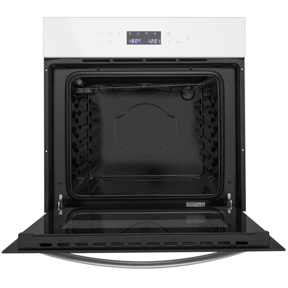 Особенности дизайна и внешней панели управления — также важный пункт при выборе духовки на кухню. В данной модели нужно обратить внимание на цвет — белый, охлаждение двери, чтобы поверхность и мебель вокруг не нагревались.