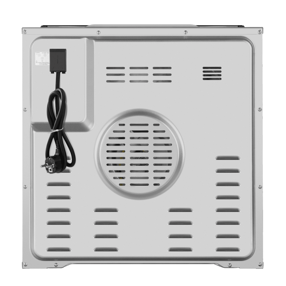 Устройство предназначено для встраивания в кухонный гарнитур: независимый электрический прибор адаптирован под нишу размером 60×56.4×59 сантиметров. Благодаря стандартным габаритам 59.5×59.5×57.5 см духовой шкаф без труда вписывается в мебельный ряд, не нарушая единство оформления и оставляя место для организованного хранения.