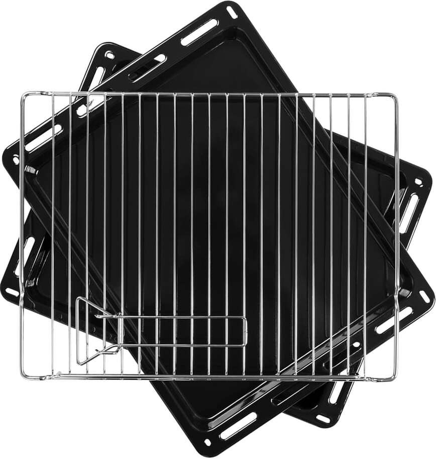 В стандартную комплектацию любого духового шкафа входят один или два противня — эмалированных или с антипригарным покрытием — и решетка. Единственный противень, как правило, имеет низкие бортики и предназначается для приготовления выпечки. Если духовка комплектуется двумя противнями, то второй отличается более высокими бортиками — его можно использовать для запекания мяса, птицы, овощных блюд. На решетке в духовке, не оснащенной грилем, обычно устанавливаются формы для запекания — стальные, керамические или стеклянные. В духовках премиум-класса количество противней может быть увеличено: к стандартному комплекту добавляются противни с перфорацией для мяса, специальные поддоны для сбора выделившегося сока.