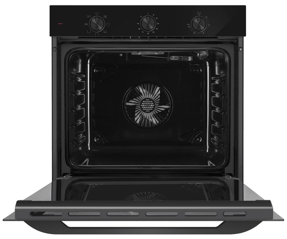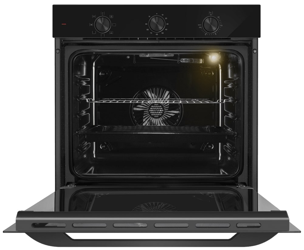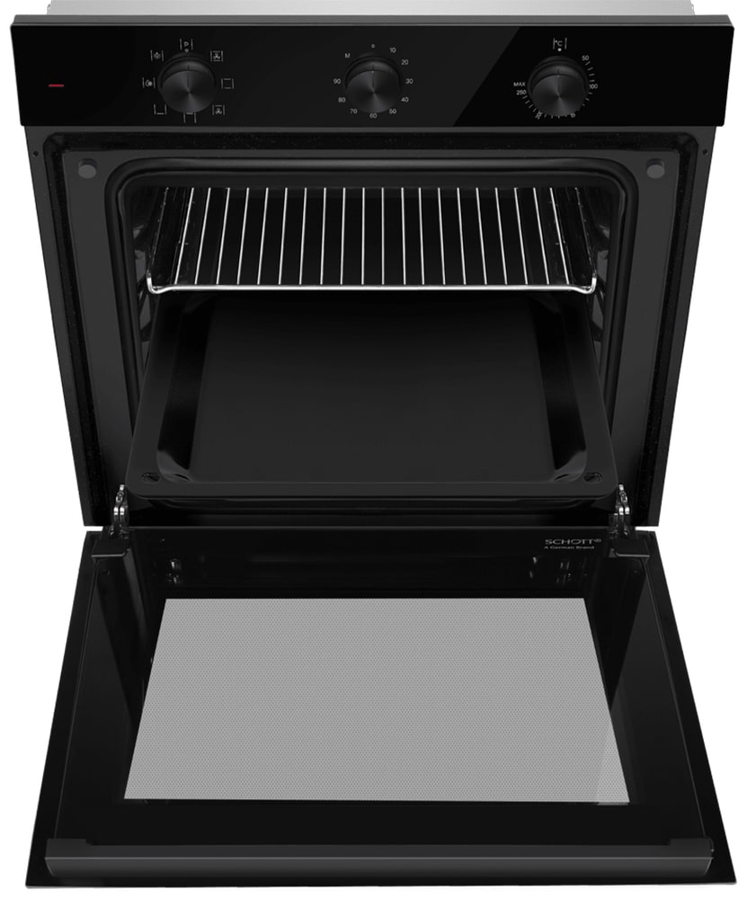 Особенности дизайна и внешней панели управления — также важный пункт при выборе духовки на кухню. В данной модели нужно обратить внимание на цвет — черный, Механическая панель управления позволяет быстро разобраться в настройке программ и не требует чрезмерных усилий.