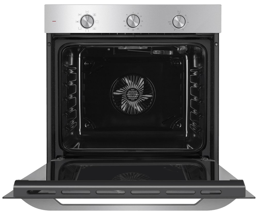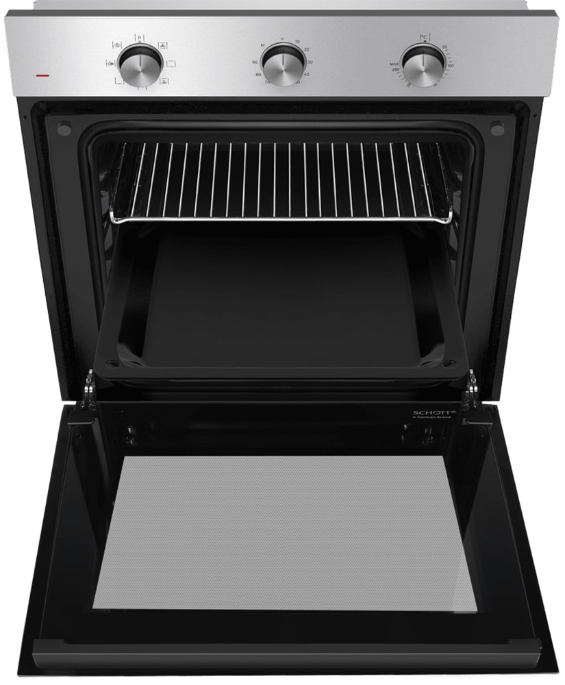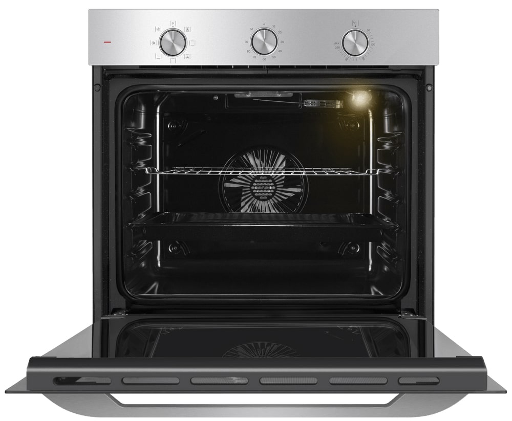 Модель оснащена базовым набором из семи режимов работы: в их число входят верхний/нижний нагрев, раздельный верхний и нижний, конвекция, интенсивное жарение и сочетание вентилятора с нижним нагревом. Духовка подойдет для выпечки, приготовления больших кусков мяса с корочкой, запекания или тушения. Внутреннее покрытие — эмаль лёгкой очистки — облегчает уход, а освещение камеры улучшает визуальный контроль готовности. Техника независимая, необходимо электрическое подключение к сети 220-240 В частотой 50/60 Гц. Температура регулируется в диапазоне от 50 до 250 °C. Устройство относится к высокому классу энергопотребления A. Встроенная система тангенциального охлаждения и автоматическое отключение по окончании программы повышают безопасность, а в комплекте идут решётка и глубокий поддон для разных способов приготовления.