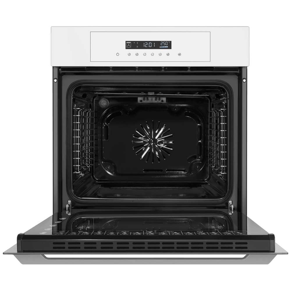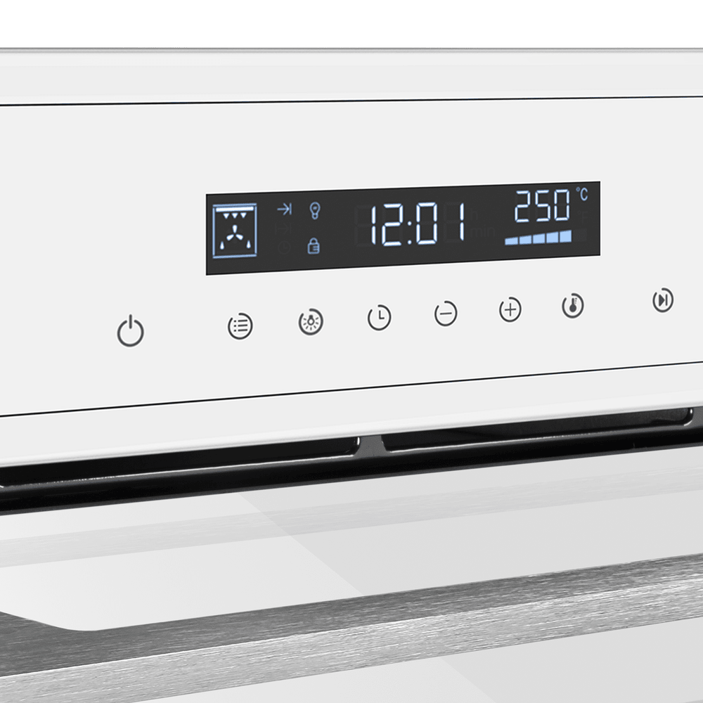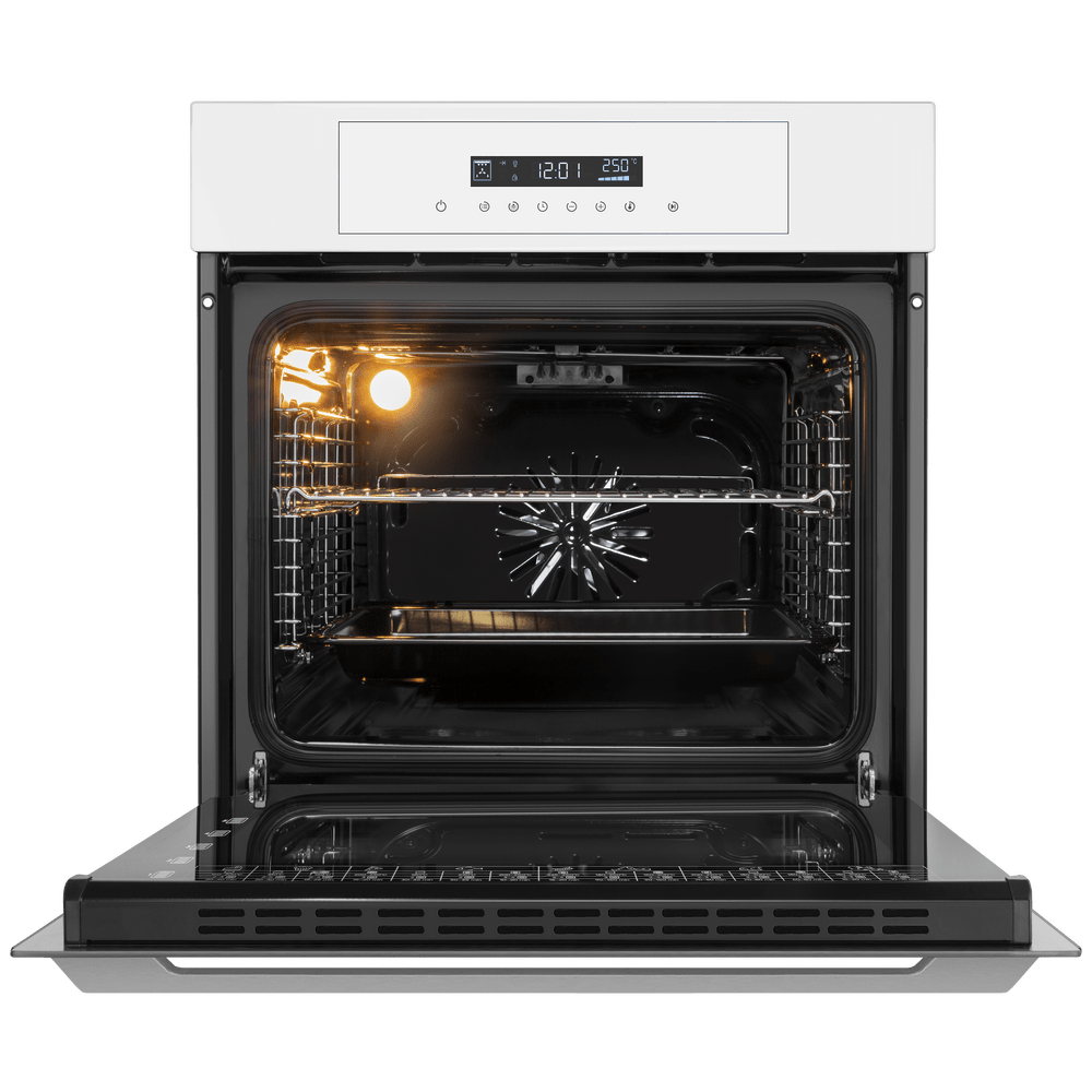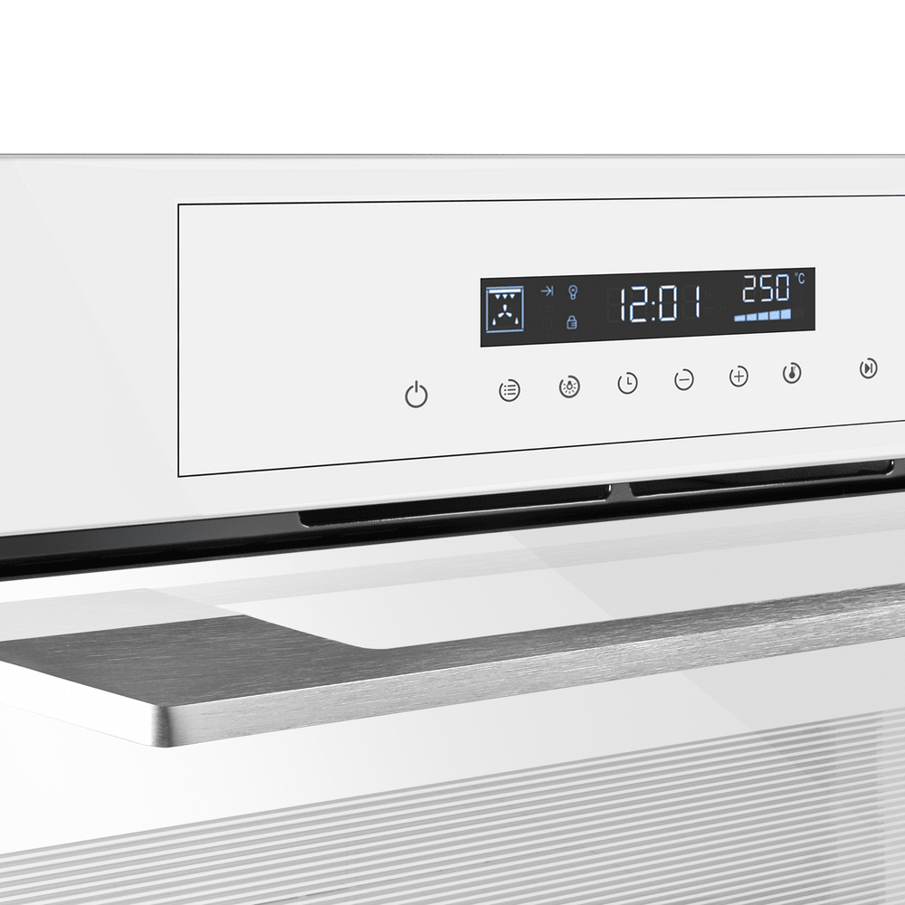 Белый фасад духовки — классический вариант: именно в белом цвете эти приборы производились многие десятилетия. Он стильно выглядит, менее маркий, более удобный в уходе: подойдет как для классических, так и для современных интерьеров. Кроме того, белая духовка будет оптимальным вариантом для небольшой кухни, так как этот цвет зрительно расширяет пространство.
