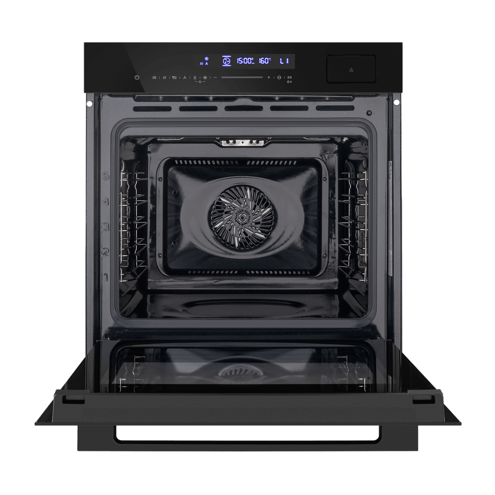 Особенности дизайна и внешней панели управления — также важный пункт при выборе духовки на кухню. В данной модели нужно обратить внимание на цвет — черный, охлаждение двери, чтобы поверхность и мебель вокруг не нагревались.