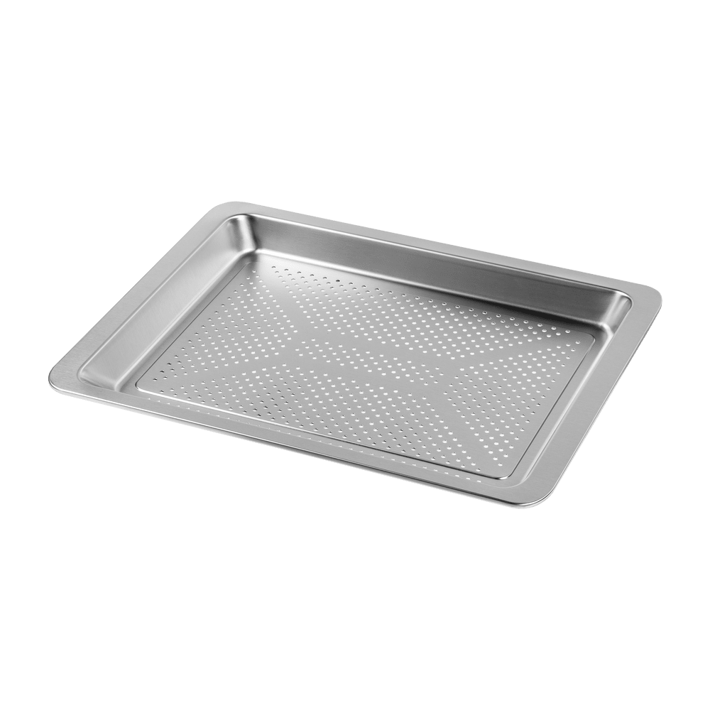 В стандартную комплектацию любого духового шкафа входят один или два противня — эмалированных или с антипригарным покрытием — и решетка. Единственный противень, как правило, имеет низкие бортики и предназначается для приготовления выпечки. Если духовка комплектуется двумя противнями, то второй отличается более высокими бортиками — его можно использовать для запекания мяса, птицы, овощных блюд. На решетке в духовке, не оснащенной грилем, обычно устанавливаются формы для запекания — стальные, керамические или стеклянные. В духовках премиум-класса количество противней может быть увеличено: к стандартному комплекту добавляются противни с перфорацией для мяса, специальные поддоны для сбора выделившегося сока.