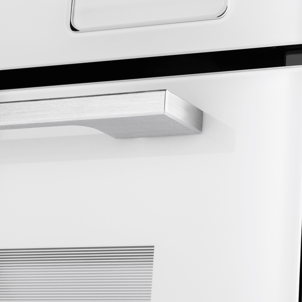 Белый фасад духовки — классический вариант: именно в белом цвете эти приборы производились многие десятилетия. Он стильно выглядит, менее маркий, более удобный в уходе: подойдет как для классических, так и для современных интерьеров. Кроме того, белая духовка будет оптимальным вариантом для небольшой кухни, так как этот цвет зрительно расширяет пространство.