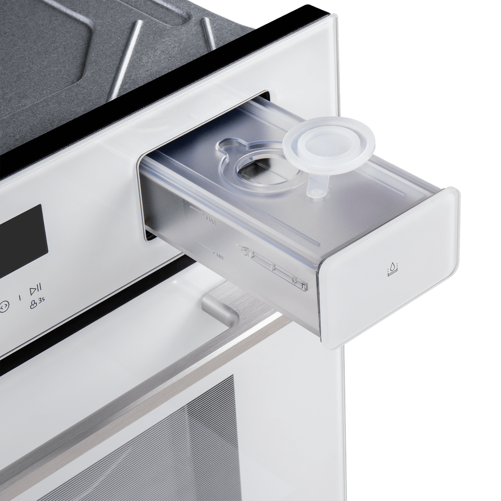Паровая (Aqua Clean, EasyClean, HydroClean, гидролиз) — вам нужно налить в специальную емкость воду (простую или с моющим средством) и оставить в камере на полчаса. Очистка проходит при небольших температурах, жир расщепляется с помощью пара и стекает в поддон.