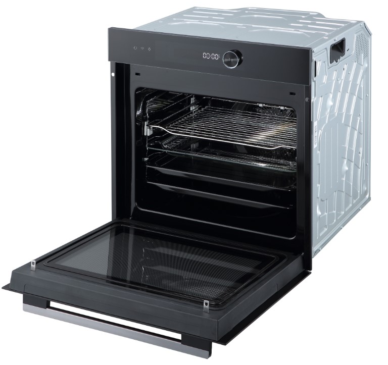 Особенности дизайна и внешней панели управления — также важный пункт при выборе духовки на кухню. В данной модели нужно обратить внимание на цвет — черный,