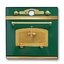 Цветные фасады духовок можно найти у таких производителей, как итальянские Smeg, ILVE, Restart, Bertazzoni, немецкие Kuppersberg и Kaiser. Эти фирмы предлагают духовки с фасадами красного, зеленого, синего, коричневого цветов с богатой и оригинальной фурнитурой, а также интересные варианты в цвете меди и платины.