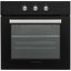 Черный встраиваемый духовой шкаф с поворотными регуляторами на панели управления. Вы можете с легкость. выбрать один из девяти режимов приготовления, например: верхний или нижний нагрев, гриль, конвекцию. Камера очищается традиционным способом.