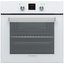 Независимый электрический духовой шкаф белого цвета с откидной дверью с двухслойным стеклом. На металлической панели управления расположены поворотные регуляторы для выбора режима и дисплей для отображения времени или показателей таймера. В комплекте с прибором идут решетка и противень EasyClean.