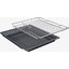 В стандартную комплектацию любого духового шкафа входят один или два противня — эмалированных или с антипригарным покрытием — и решетка. Единственный противень, как правило, имеет низкие бортики и предназначается для приготовления выпечки. Если духовка комплектуется двумя противнями, то второй отличается более высокими бортиками — его можно использовать для запекания мяса, птицы, овощных блюд. На решетке в духовке, не оснащенной грилем, обычно устанавливаются формы для запекания — стальные, керамические или стеклянные. В духовках премиум-класса количество противней может быть увеличено: к стандартному комплекту добавляются противни с перфорацией для мяса, специальные поддоны для сбора выделившегося сока.