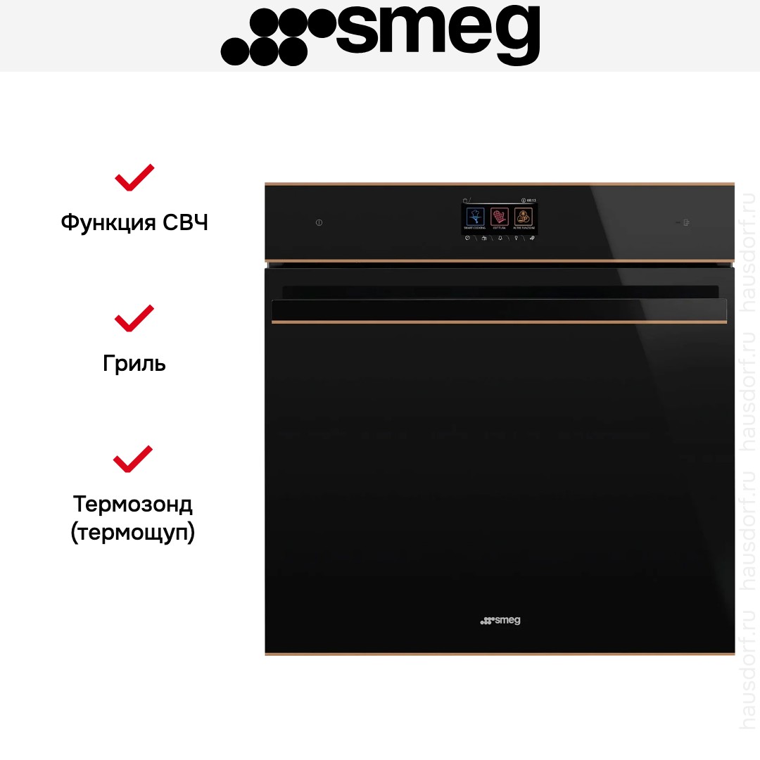 Количество режимов работы в духовом шкафу Смег: 20. В число доступных программ входят: классический нагрев, нижний нагрев, конвекция, приготовление с помощью микроволн, гриль для создания хрустящей корочки, пицца, и другие. Помимо основных программ воспользуйтесь специальными возможностями этого прибора: подогревом посуды для настоящей ресторанной сервировки; опцией автоматического поднятия теста; быстрым разогревом для ускорения работы; поддержанием температуры в камере на определенном уровне, чтобы блюда не остывали; вентилятором, совмещенным с грилем; и другими.