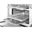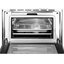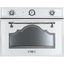 Встраиваемая модель высотой 45 см из дизайн-коллекции Cortina выполнена в белом цвете в сочетании с фурнитурой оттенка состаренного серебра. В дверце вставлено многослойное стекло оригинальной формы, которое можно снять для очистки, в том числе в посудомоечной машине. Для безопасного встраивания в кухонную мебель предусмотрена система тангенциального охлаждения. Модель позволяет готовить на гриле, при помощи статического нагрева и конвекции, а также при помощи заднего нагревательного элемента. В числе особых режимов имеется приготовление при помощи пара и горячего воздуха, а также режим, сочетающий традиционный нагрев и приготовление на пару. Предусмотрены Турбо-режим для приготовления на нескольких уровнях одновременно, размораживание по времени и по весу, режимы разогрева блюд и стерилизации посуды, режим ограничения мощности ECO-logic. Задать отсрочку включения и автоматическое отключение в конце приготовления поможет таймер. Электронный контроллер позволяет поддерживать стабильную температуру в камере. Эмаль Ever Clean способствует легкой очистке стенок камеры. В комплект включены два противня, две решетки и губка для очистки.