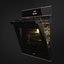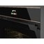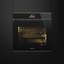 Особенностью этой модели является удобная выдвижная ручка, благодаря которой фасад остается совершенно гладким и очень удобным в очистке. Фронт из черного стекла с медным профилем уместен в кухне любого стиля. Духовой шкаф с камерой объемом 70 литров позволяет размещать противни на пяти уровнях. Модель оснащена функциями верхнего и нижнего нагрева, конвекции и гриля. Для приготовления разнообразных блюд предусмотрены 10 режимов работы, в том числе комбинированные, а также специальные режимы для подогрева посуды, подогрева готовых блюд, поднятия теста. Система Smart Cooking поможет приготовить 50 видов блюд, не указывая температуру и время приготовления — они будут подобраны автоматически. Имеется функция низкотемпературного приготовления. Режимы экономии электроэнергии и ограничения мощности позволят использовать духовку в домах со слабой проводкой. Дверца духовки с четырьмя слоями стекла всегда остается холодной. Полностью безопасное использование обеспечивает также тангенциальное охлаждение и автоматическое отключение при открывании дверцы и по окончании времени приготовления. Во время пиролитической очистки дверца блокируется.