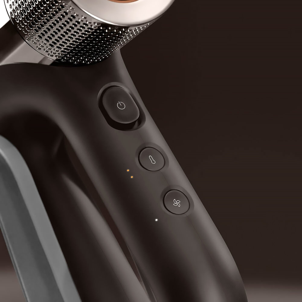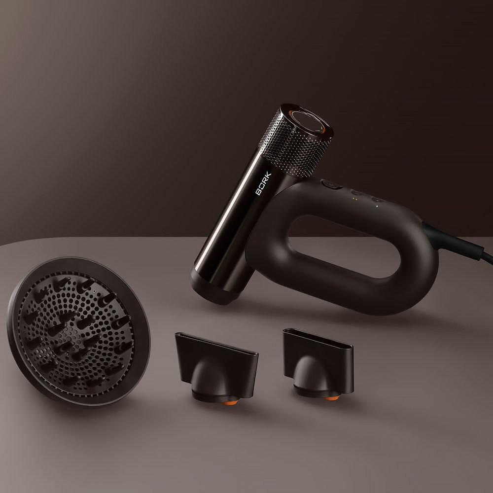 Стильный и мощный фен Bork в корпусе цвета грейдж с необычной изогнутой ручкой, которая снижает нагрузку на руку. 3 температурных режима и 3 скорости позволяют быстро и бережно высушить волосы любой структуры и сделать стойкую укладку. Благодаря нескольким насадкам можно сделать поток воздуха концентрированным или рассеянным.