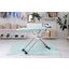 Резервуар для воды снабжен ручкой, так что его можно снимать и доливать воду в процессе работы. Специальный фильтр с гранулами защищает систему от образования накипи, в том числе и при использовании водопроводной воды. Доску можно складывать одним движением, перемещать с помощью системы колесиков и хранить в вертикальном положении. Шесть уровней высоты позволяют отрегулировать ее наиболее удобно.