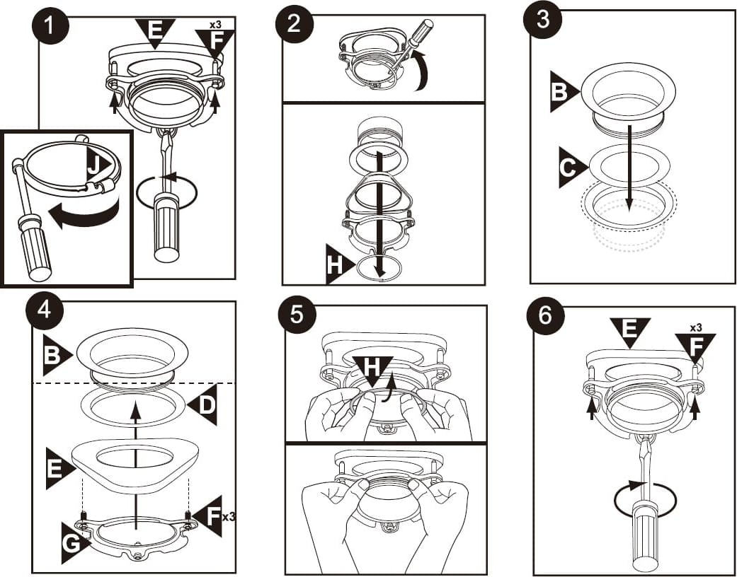 Крышка-толкатель в измельчителях пищевых отходов позволяет удалить частицы пищи с посуды, протолкнуть отходы в камеру диспоузера, защитить кухонную мебель и технику от разбрызгивания воды с содержащимися в ней остатками пищи, а само устройство — от попадания в камеру посторонних мелких предметов.