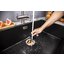 Устройство, которое закрывает сливное отверстие в мойке и проталкивает отходы в измельчитель. Оно ускоряет работу и предотвращает попадание в камеру посторонних предметов, например, столовых приборов.