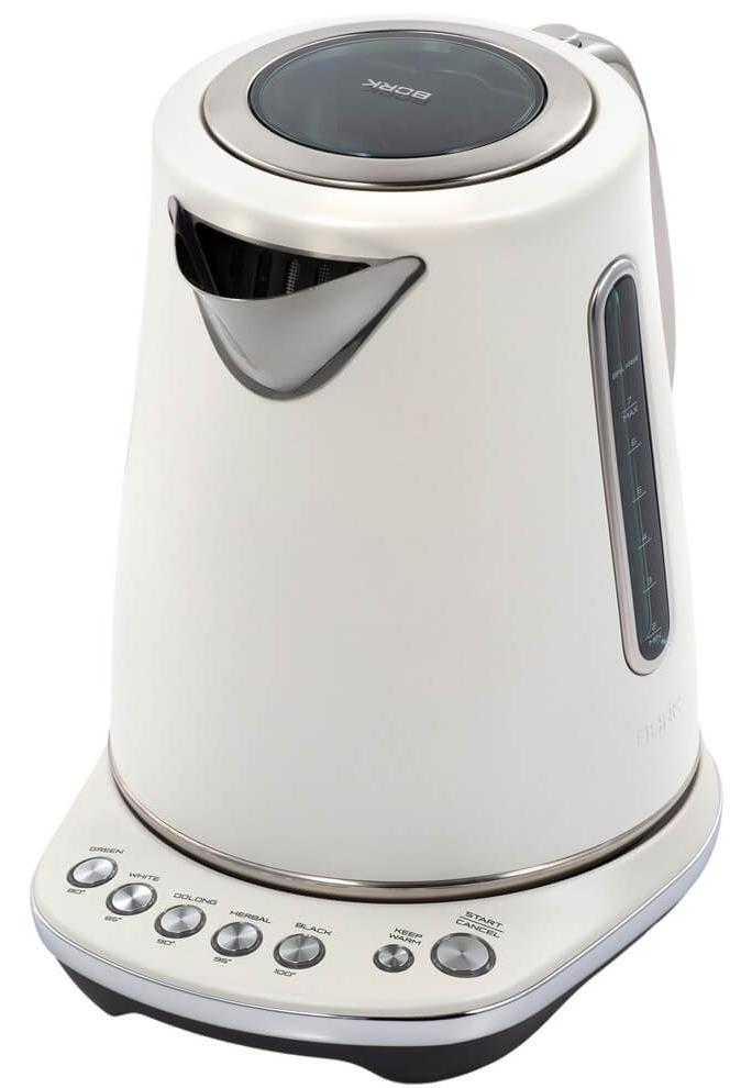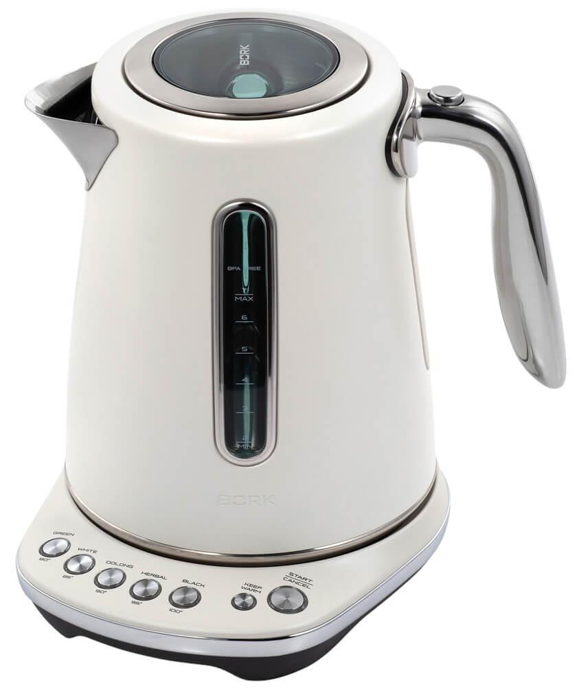 Функция поддержания заданной температуры Keep Warm для электрических чайников Bork позволяет сохранять температуру воды с точностью до градуса в течение 60 минут. Это поможет использовать приготовленный напиток длительное время без повторного кипячения в оптимальном диапазоне для заваривания чая.