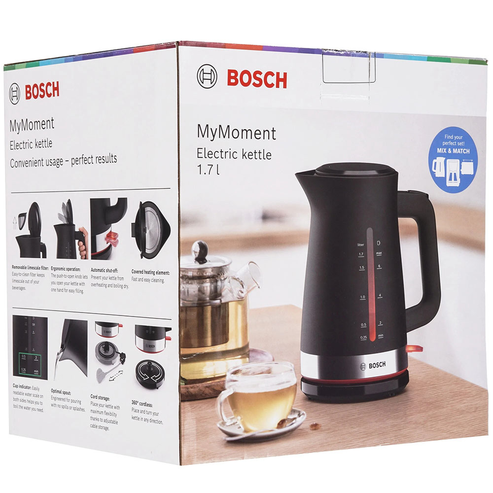 Материал корпуса: нержавеющая сталь. Материал подставки: пластик. Объем (л): 1.7. Цвет: черный. Мощность (Вт): 2400. Управление: механическое.