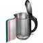 Материал корпуса: металл/пластик. Материал подставки: металл/пластик. Объем (л): 1.8. Цвет: нержавеющая сталь. Мощность (Вт): 2200. Управление: механическое.