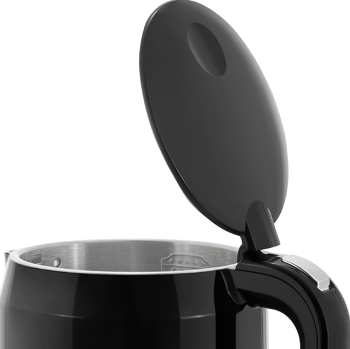 Материал корпуса: cталь. Материал подставки: пластик. Объем (л): 1.7. Цвет: черный. Мощность (Вт): 2200. Управление: электронное.