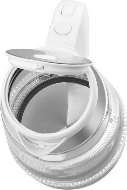 Материал корпуса: пластик/стекло. Материал подставки: пластик. Объем (л): 1.7. Цвет: белый. Мощность (Вт): 2200. Управление: механическое.