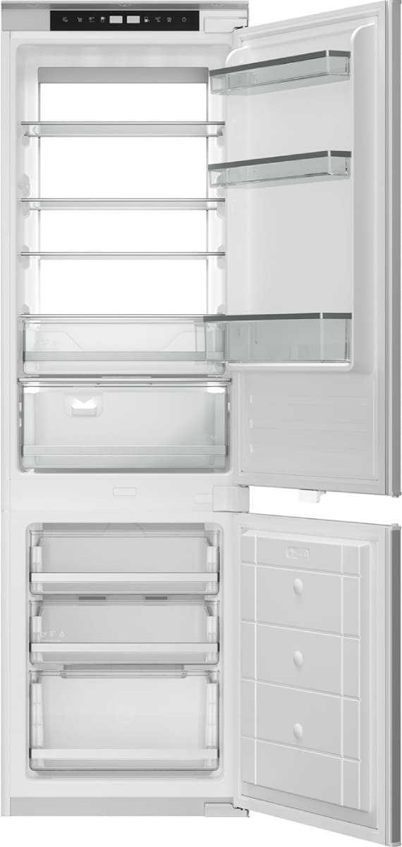Встраиваемый прибор проще разместить в комнате, даже если общий метраж не такой уж большой. Вы можете спрятать его за декоративной панелью от мебельного фасада — советуем заранее определить нишу и заказывать панели исходя из типа крепления к двери. Способ монтажа в данной модели: жесткое крепление (система door on door) Вы можете поменять направление открывания двери, так как упор переставляемый и ее можно перевесить на другую сторону. Такая функция открывает больше возможностей для установки. Холодильник с морозильником обладает всеми опциями, которые чаще всего ищут и выбирают покупатели. Стандартная конфигурация — универсальный вариант для любой квартиры. Количество камер: 2.