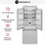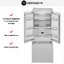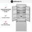 Особенность модели — трёхдверная система с конфигурацией French Door: две распашные двери холодильной зоны и одна выдвижная — морозильной. Такое решение обеспечивает удобный доступ к продуктам, минимизирует утечку холода и подчёркивает премиальный статус техники. Дверные упоры симметричны, что создаёт ощущение баланса и гармонии при открытии. Устройство легко монтируется в нишу высотой от 212,9 до 216,9 см, шириной 91,4 см и глубиной 63,5 см, гарантируя плотное прилегание и эффективную вентиляцию.