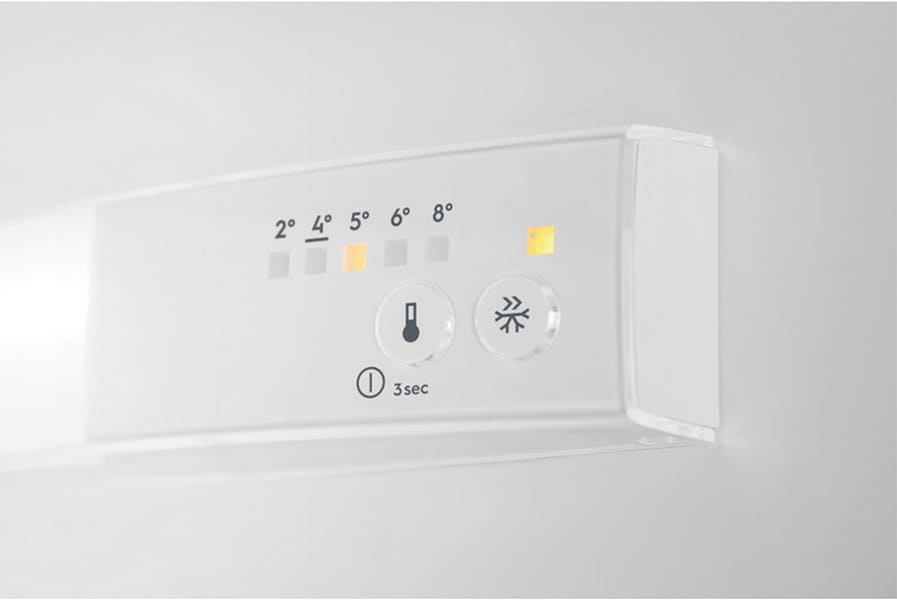 Гораздо точнее сориентироваться по индикаторам можно в холодильниках с электронной системой управления. Эти устройства обычно оснащены дисплеем, на котором высвечиваются значения фактической температуры в холодильной и морозильной камерах. Рядом с ними располагаются кнопки, во многих случаях сенсорные, при помощи которых можно регулировать температуру в каждой камере отдельно, и индикаторы включения этих камер. Здесь же, на панели инструментов, находятся индикаторы, указывающие на активацию дополнительных опций — например, режимов быстрого замораживания и быстрого охлаждения, отпускного режима, блокировки панели управления от детей.