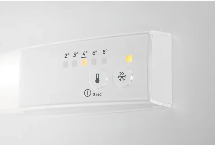 Основным элементом управления в холодильниках с механической или электромеханической системой служит поворотной переключатель с делениями. Поворотом ручки можно регулировать степень охлаждения на нескольких уровнях — от минимального до максимального. Точное значение температуры в таких устройствах установить невозможно. Кроме того, во всех холодильниках присутствует система индикации, которая действует при повышении температуры в камере выше заданного значения, а также лампочка, которая загорается при неплотно закрытой дверце.