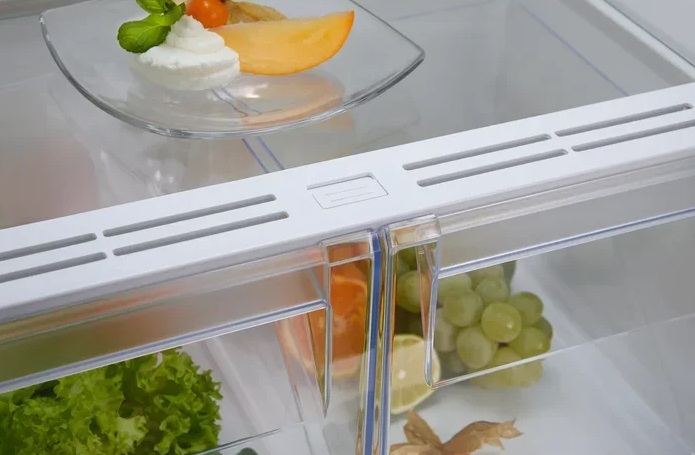 Вместительные контейнеры позволяют хранить достаточное количество овощей и фруктов. Для более длительного хранения и поддержания свежести овощей и фруктов разработаны специальные системы хранения. Среди них, например, зона свежести с увеличенной влажностью до 85% и температурой около 0 градусов. Это герметично закрывающийся ящик, часто на выдвижных роликах или направляющих, в котором имеется специальное задвижка, позволяющая регулировать влажность. Как известно, при более высокой влажности продукты с большим содержанием воды дольше остаются свежими.