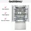 Внушительный агрегат высотой 212,5 см, шириной 90,8 см, глубиной 61 см подходит для просторной кухни. Внутреннее наполнение и отделка выполнены из нержавеющей стали с элементами из алюминия темного оттенка, дверные полки — из цельного алюминия. В обоих отделениях применяется технология No Frost, препятствующая образованию инея и льда на стенках. В холодильнике Гаггенау предусмотрены две полки из ударопрочного стекла: одна из них моторизованная с регулировкой по высоте, другая разделяется на две части, которые можно использовать по отдельности. Зона свежести включает два выдвижных контейнера — сухой для хранения мяса, рыбы и птицы, влажный для овощей и фруктов. Морозилка с аккумуляторами холода разделена на два ящика с прозрачным фронтом для удобства хранения, при отключении электричества она сохраняет продукты автономно в течение суток.